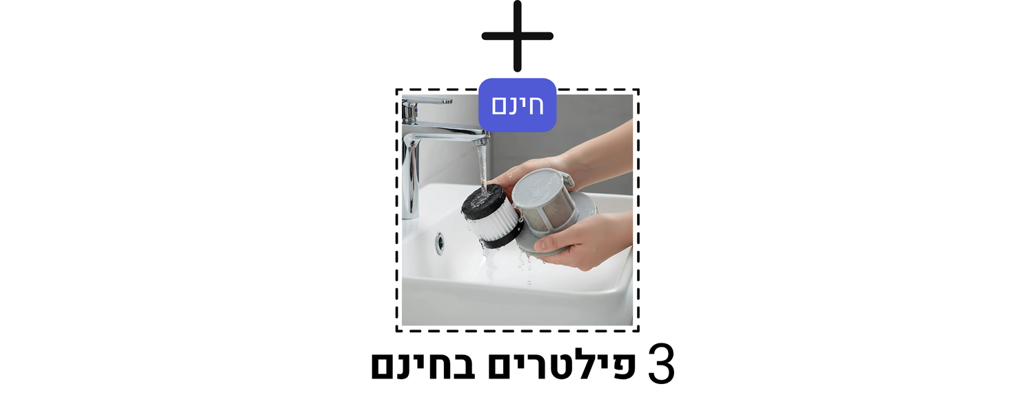 ניתן לשטוף בקלות את מסנן החלקיקים היעיל במים ולהשתמש בו מחדש.